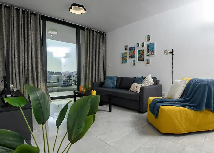 ベッドルーム1室のSunny 1-Bedroom Apartment - Staysbydais ラルナカから歩いてわずか6分離れたアントニス・パパドプーロス・スタディウムなどの市内の観光スポットへ行きやすいです。 アパートはトルコ式スチ-ムル-ム、トルコ式ハマム(バス) とジャグジーを備えており、リラックスできる滞在に最適な雰囲気を提供いたします。
